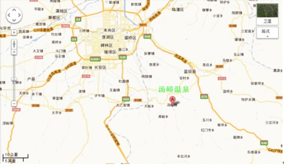 湯峪溫泉,位于西安大雁塔以南38公里的東湯峪—藍田湯峪,原名“石門湯泉”,為秦地勝地,唐時即建“大興湯院”和皇家行宮“上林苑”。如今是吸引城郊老年人來這里休閑養(yǎng)老的理想之地,景區(qū)內(nèi)環(huán)境優(yōu)美,青山環(huán)抱,谷幽林秀,湖光倒映,草深魚躍。