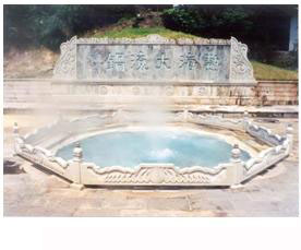 云南巴臘掌溫泉風景在諸泉中,最有特點和傳奇色彩的要數“仙人澡塘”。在一塊高出河面約25米的巖石上,共有3潭泉水:大的面積約為4平方米, 小的面積分別為0.4和0.5平方米,相隔僅20厘米,卻一冷一熱, 熱的溫度高達95攝氏度,冷的只有20攝氏度。